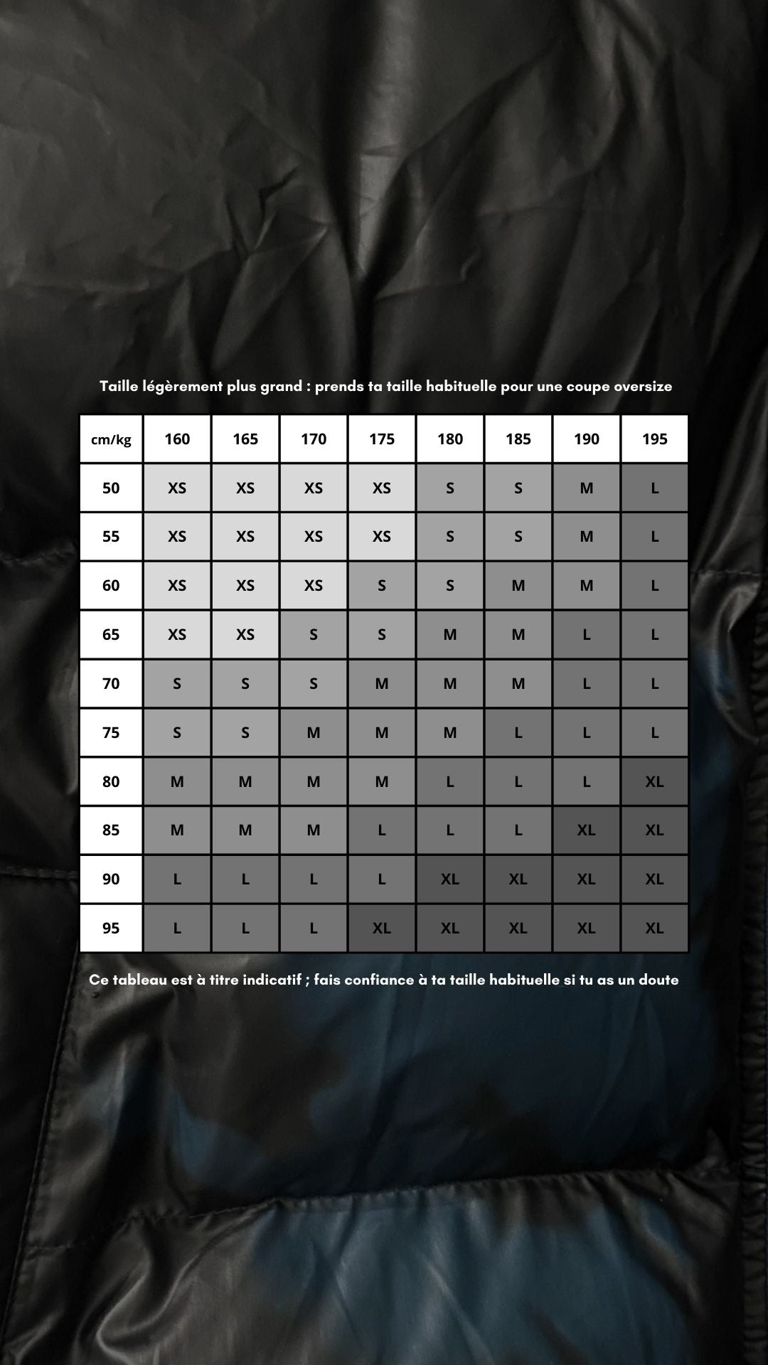 - Prends ta taille habituelle pour une coupe légèrement oversize